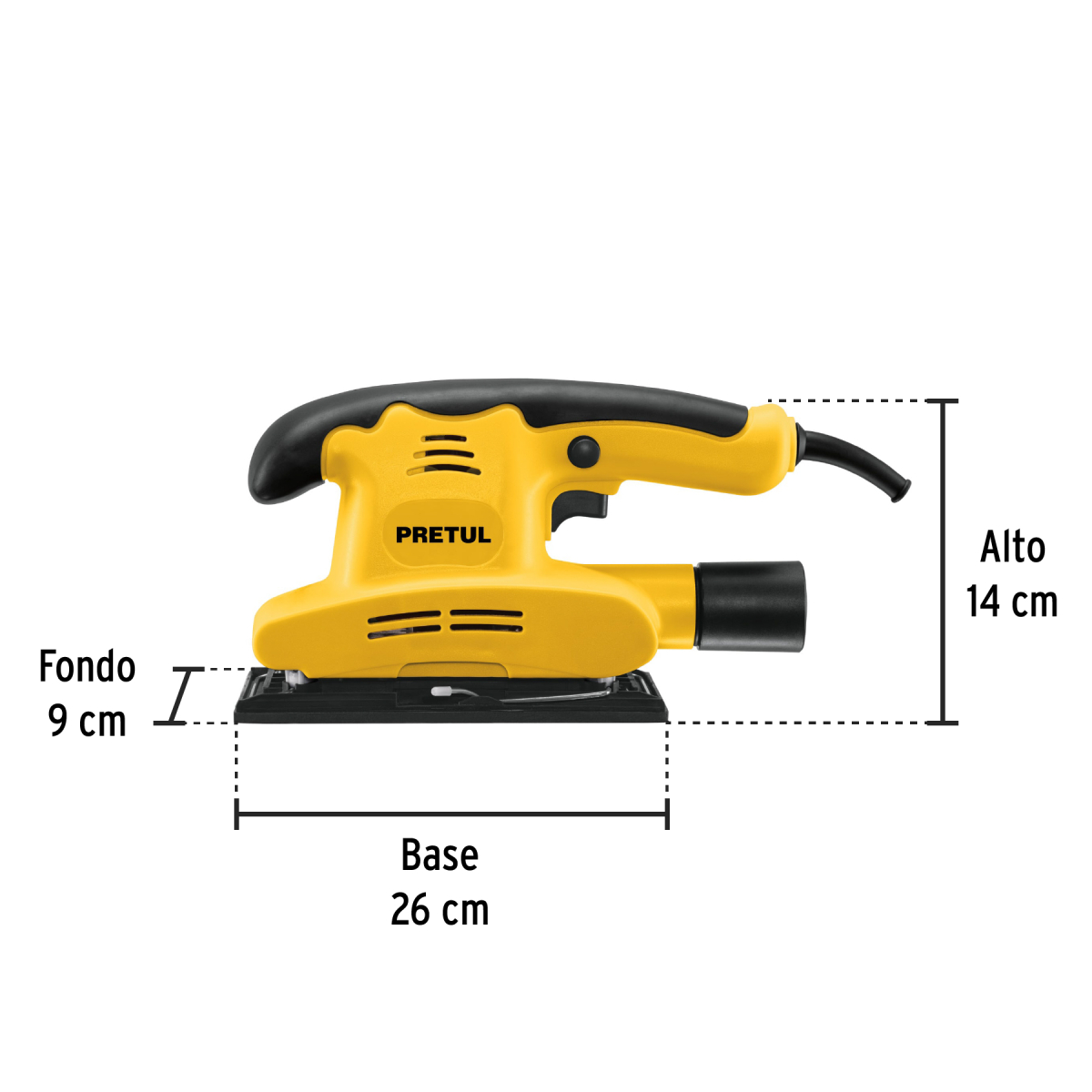 Dimensiones (Base x Alto x Fondo) 26 cm x 14 cm x 9 cm