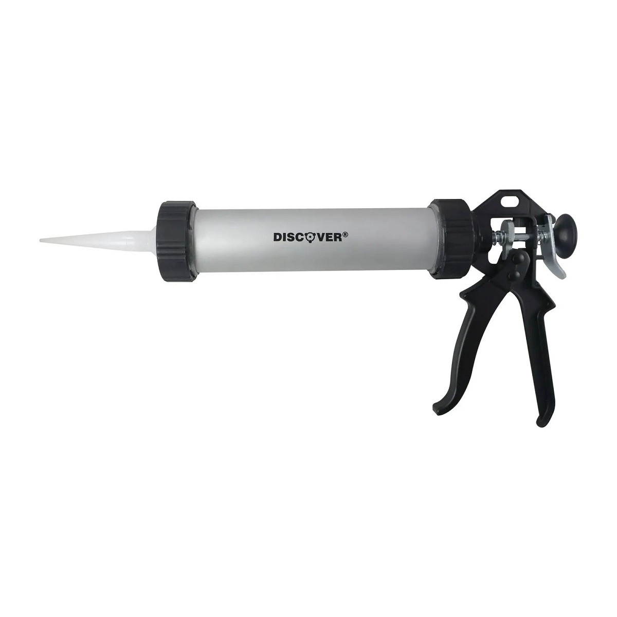 Calafateadora trabajo profesional DISCOVER. Fabricada con materiales de alta calidad para una mayor resistencia al uso. Herramienta usada para aplicar siliconas liquidas en tubo o derivados de manera practica y ágil.
